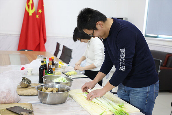 冬至宴熱鬧有序的進(jìn)行著(zhù),大家分工明確,以飽滿(mǎn)的熱情投入這場(chǎng)活動(dòng)中,先開(kāi)始行動(dòng)的就是我們的采買(mǎi)小隊,精心挑選食材,交于我們的帥哥-調餡擔當。