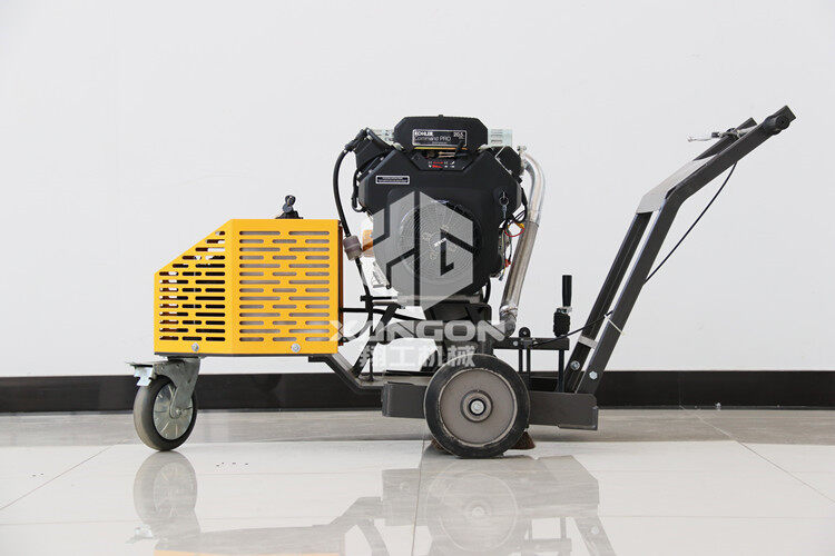 路面開(kāi)槽機是由動(dòng)力強勁的發(fā)動(dòng)機作為動(dòng)力源,通過(guò)三角帶帶動(dòng)主軸高速旋轉,手搖升降手輪使主軸下降,切割裂縫,前行走輪采用萬(wàn)向輪,使整機在工作中可以按照裂縫自然形成的曲線(xiàn)進(jìn)行切槽,裝有匹配的風(fēng)扇頁(yè)還可以用做開(kāi)槽后對槽里灰塵的清理,實(shí)現一機多用的目的。