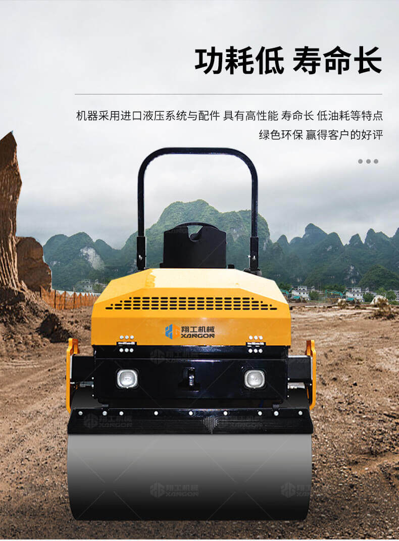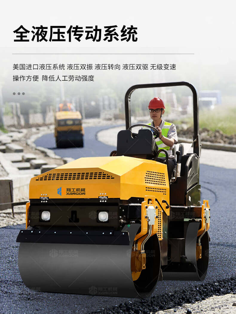 采用進(jìn)口液壓系統,雙驅雙振,前后輪可單獨調節振動(dòng),亦可同時(shí)振動(dòng)。液壓轉向,液壓驅動(dòng),液壓行走,液壓振動(dòng)。進(jìn)口英國鉑金斯柴油機三缸水冷四沖程,動(dòng)力強勁,性能穩定。超快速度一小時(shí)可達12千米,無(wú)極變速。壓土,碎石,壓瀝青,壓回填土效果超乎想象。