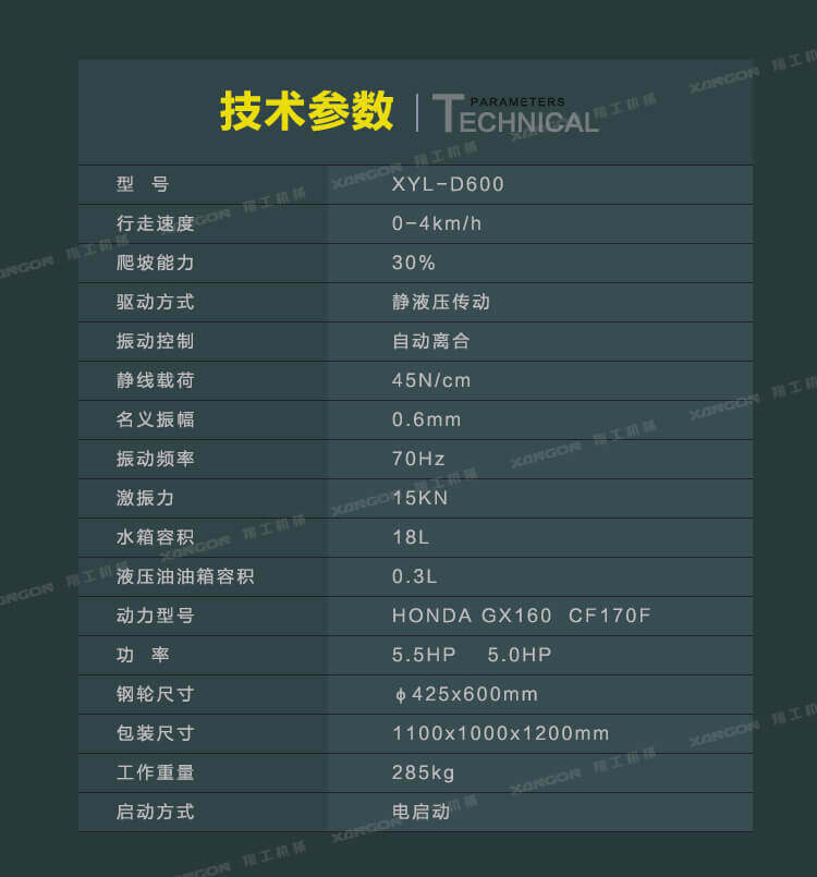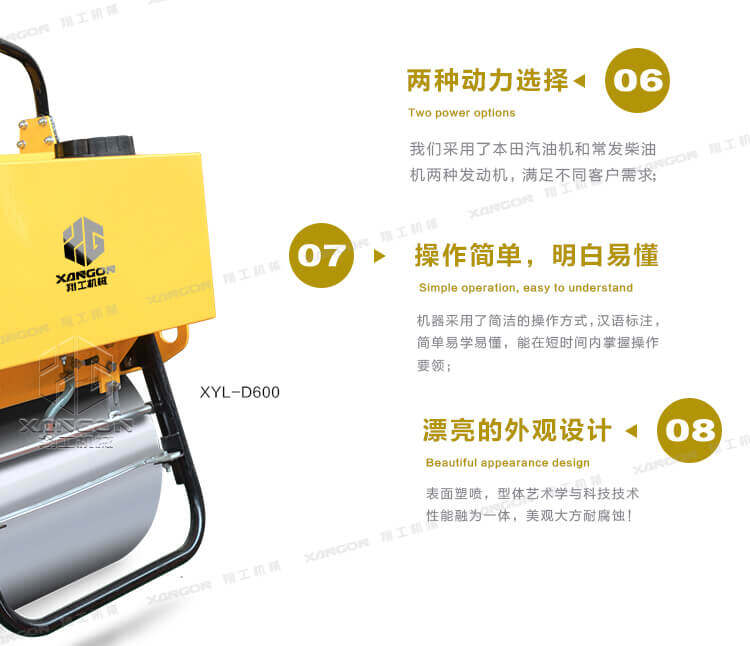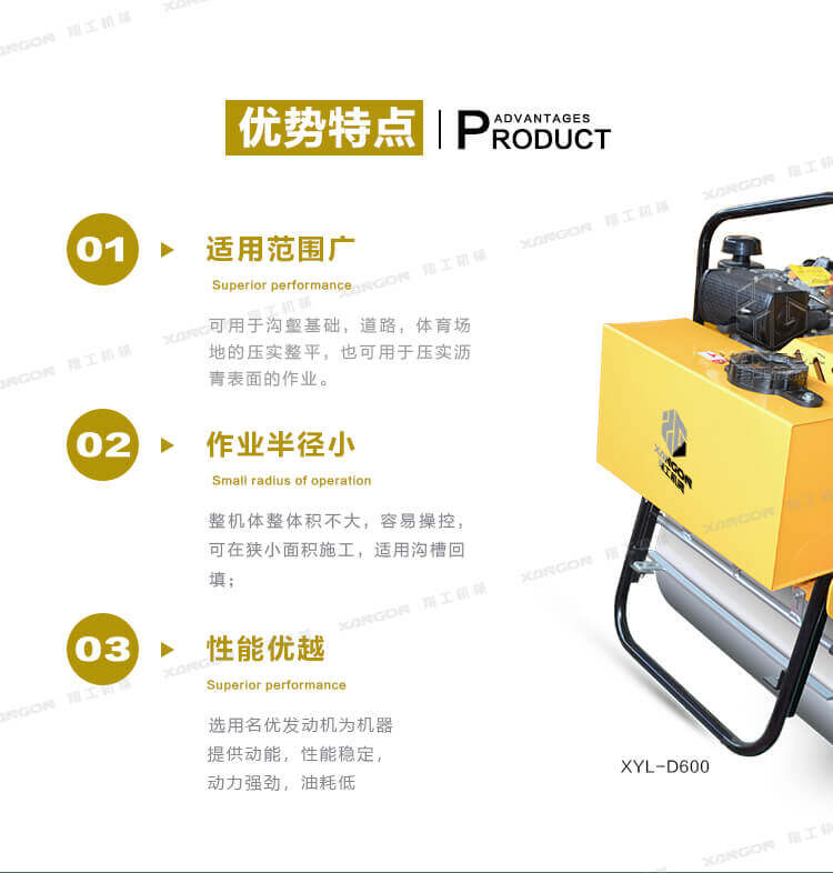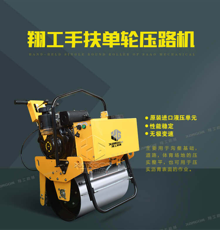 手扶單輪(汽油)壓路機進(jìn)口液壓系統手扶壓路機XYL-D600主要用于溝渠基礎,道路,體育場(chǎng)地的壓實(shí)整平,也可用于壓實(shí)瀝青表面的作業(yè)。