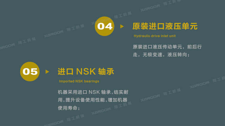 ·傳動(dòng)機構采用名優(yōu)液壓傳動(dòng)系統,無(wú)級變速,換向方便,實(shí)用壽命長(cháng);