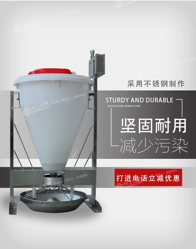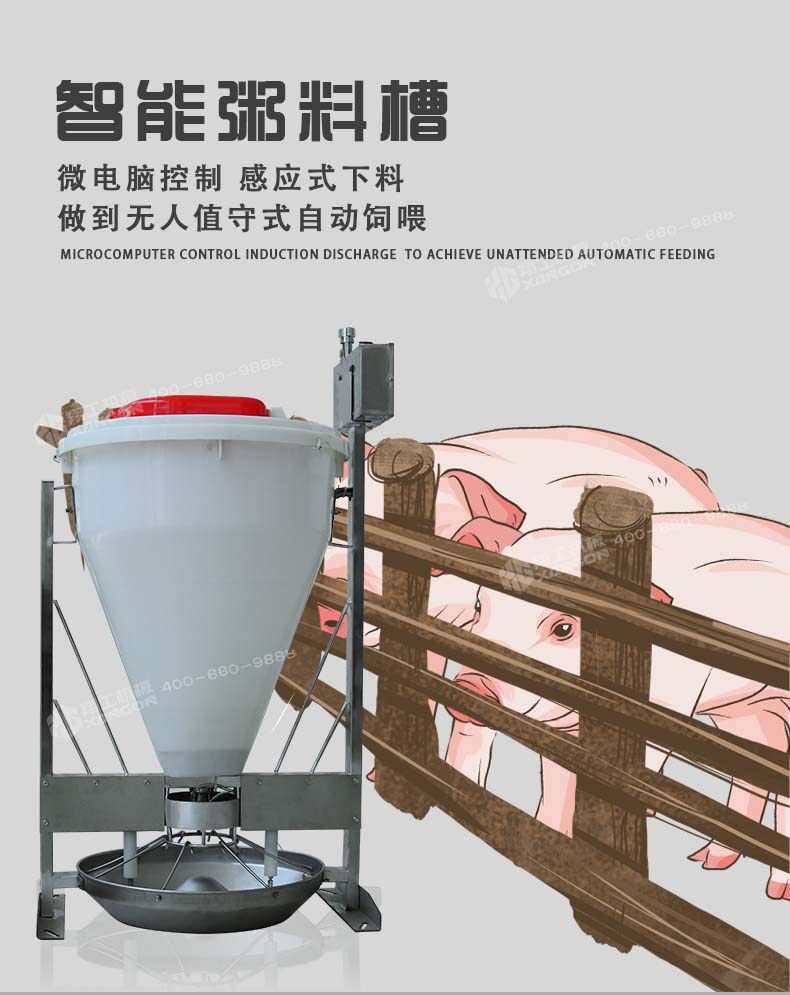 4.智能料槽,粥料器,采用微電腦控制,感應式下料,做到無(wú)人值守式自動(dòng)飼喂。核心控制部件采用模塊式,灌注膠全密封,防水防塵,經(jīng)久耐用,而且更換方便。