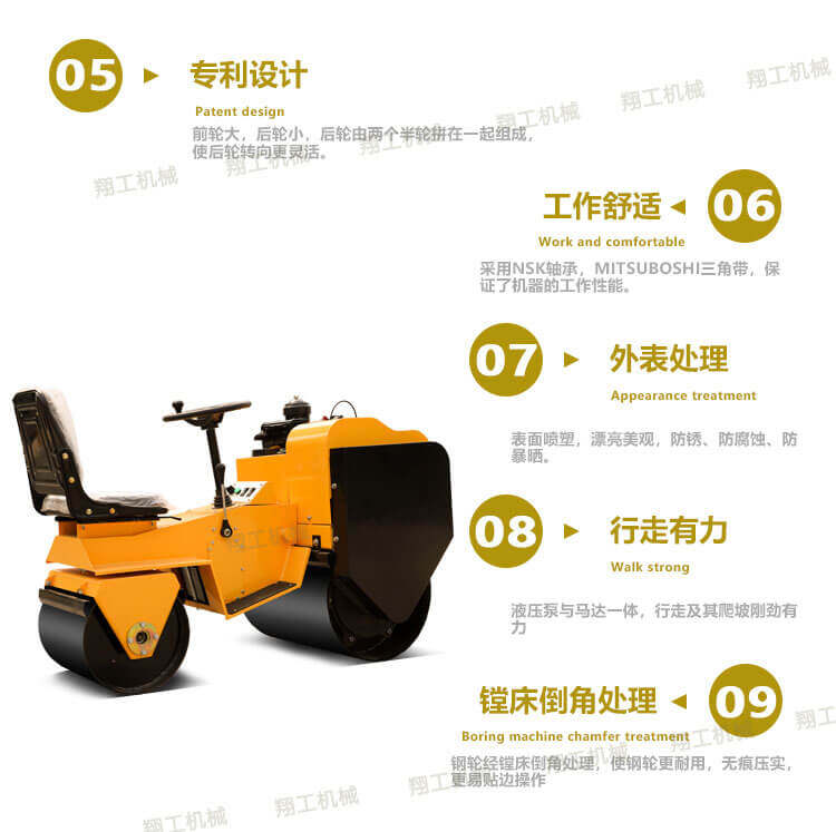 山東翔工XYL-850座駕壓路機=無(wú)縫鋼輪 進(jìn)口軸承(軸承決定壽命) 原裝進(jìn)口美國丹弗斯液壓系統 加黃油的黃油孔 常發(fā)6馬力風(fēng)冷柴油機 無(wú)極變速 2t壓實(shí)力 電磁離合振動(dòng) 單獨的震動(dòng)按鈕 前進(jìn)后退手柄 可靜碾可震動(dòng) 鋼輪采用鏜床技術(shù)(故障率更低)。