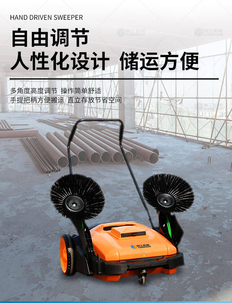 手推式掃地機能清潔房屋周邊范圍:包括小路,公路,車(chē)道和院子,能比用普通的掃把和簸箕節省5倍的時(shí)間,清掃時(shí)垃圾被迅速的收集到塵箱,簡(jiǎn)單、快速、干凈。