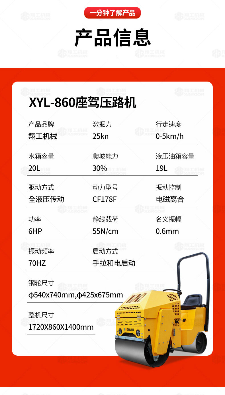 XYL-860座駕壓路機適用于各種溝槽沙土回填壓實(shí)、高層建筑地下室土方壓實(shí)、小區道路基礎壓實(shí)、各種草坪壓實(shí)、修補及各種小型工程的使用,解決了大型壓路機無(wú)法工作區域的壓實(shí)作業(yè)。