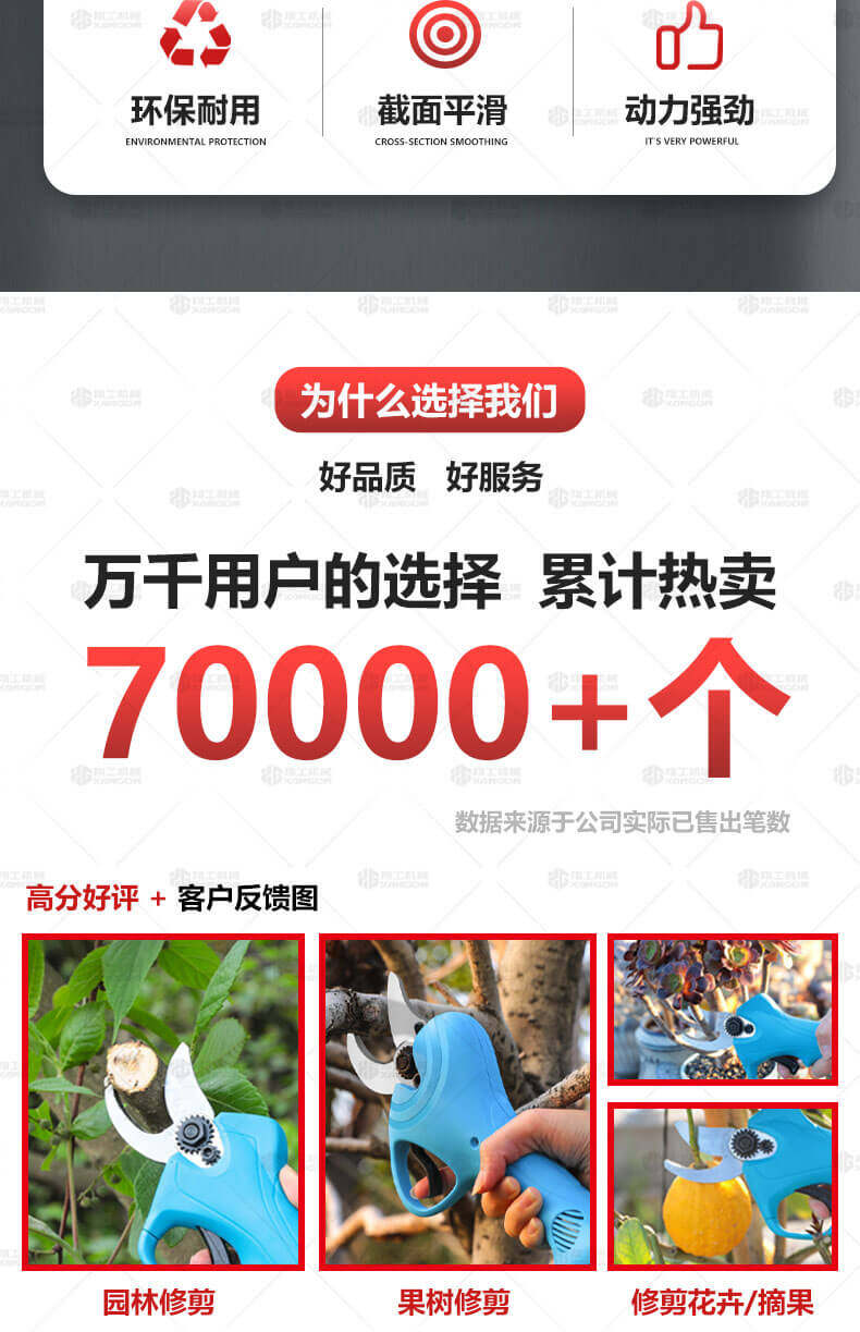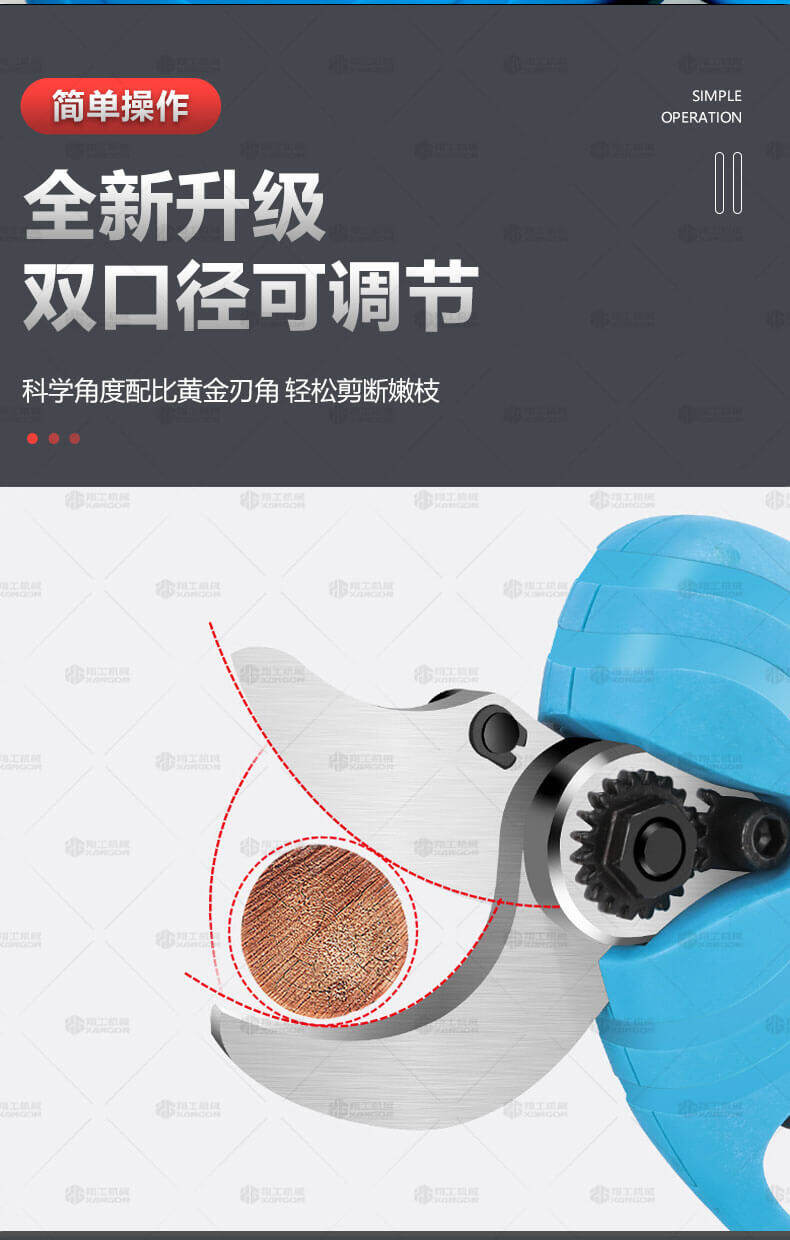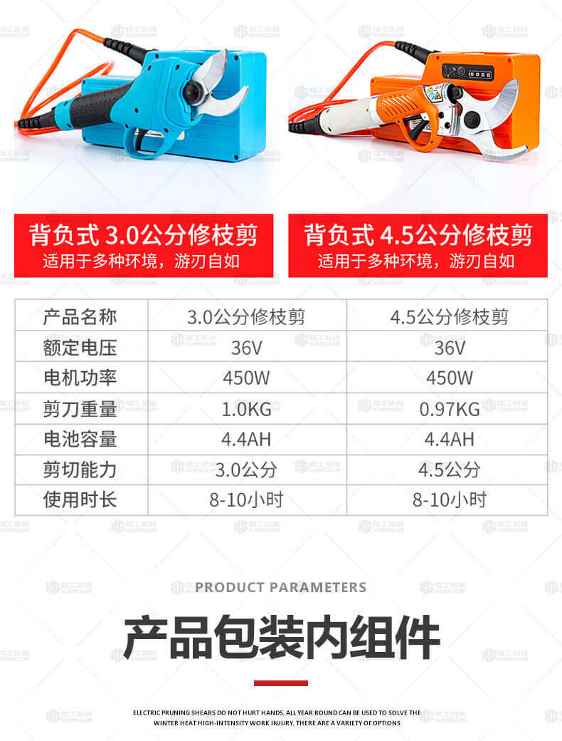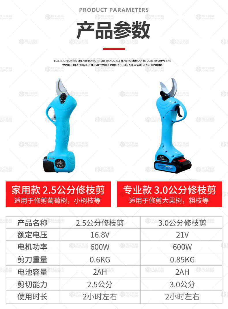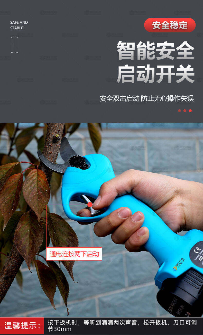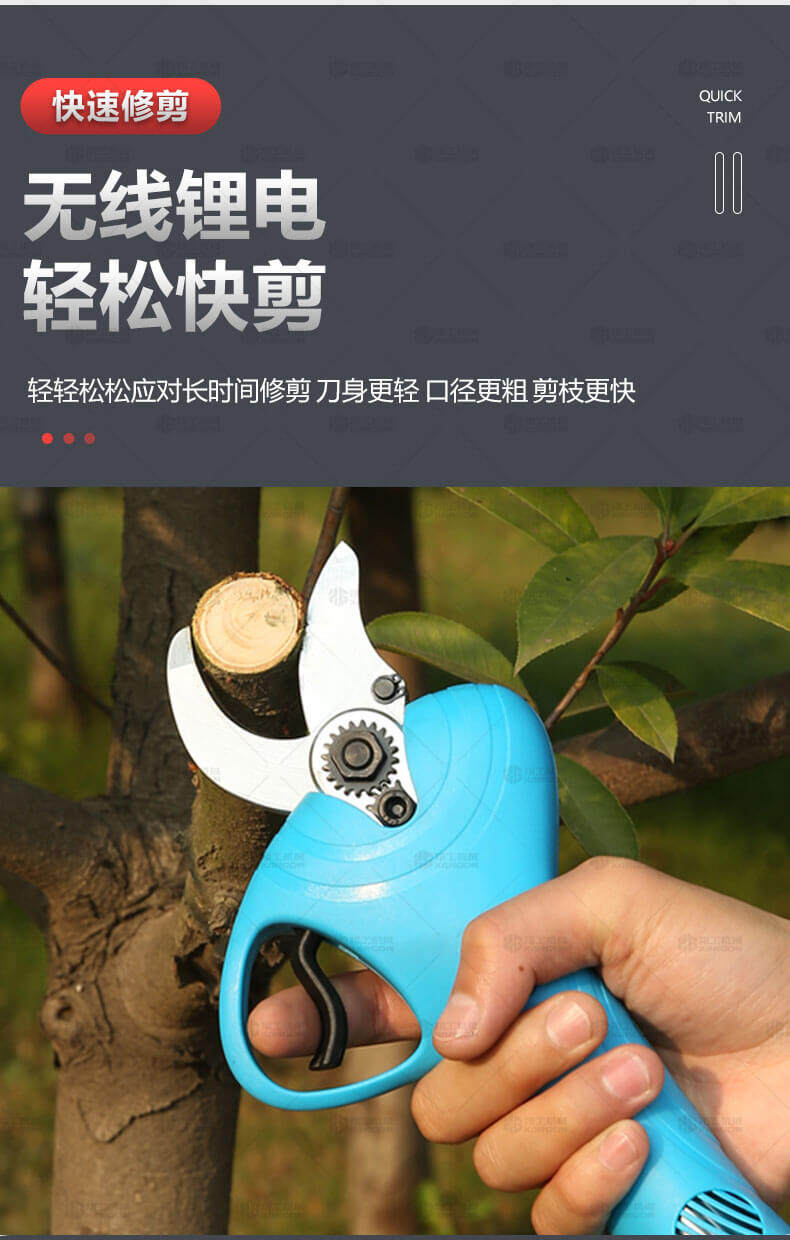 電動(dòng)修枝剪的使用大大提高了植物的修剪效率,降低了修剪工的工作強度,大受人們的喜愛(ài)。滿(mǎn)足了當今社會(huì )簡(jiǎn)單輕巧的工作方式,一把小小的電動(dòng)修枝剪不傷手,一年四季均可以使用,解決寒冬酷暑高強度工作的傷害,電動(dòng)修枝剪有多種選擇,這是一款無(wú)線(xiàn)的電動(dòng)修枝剪,使用更加方便。