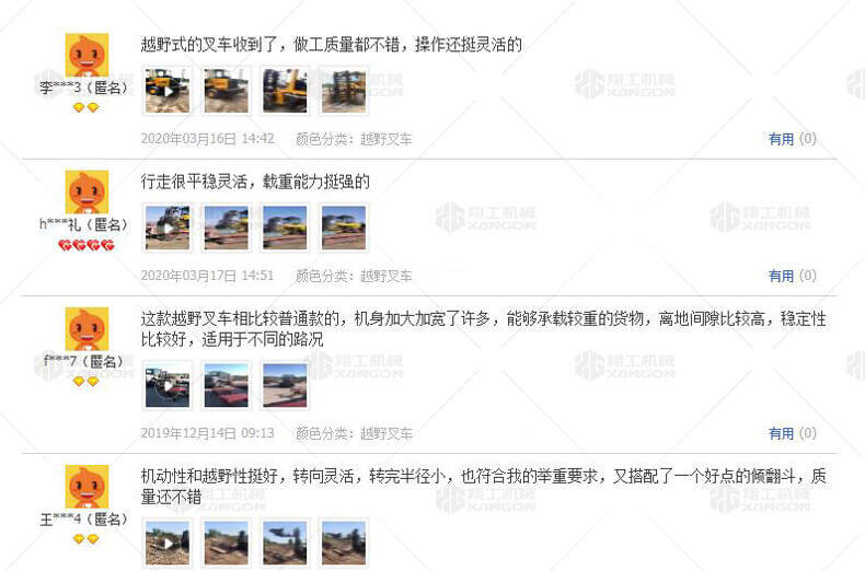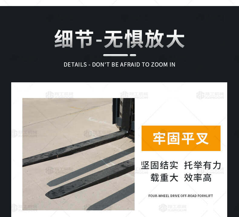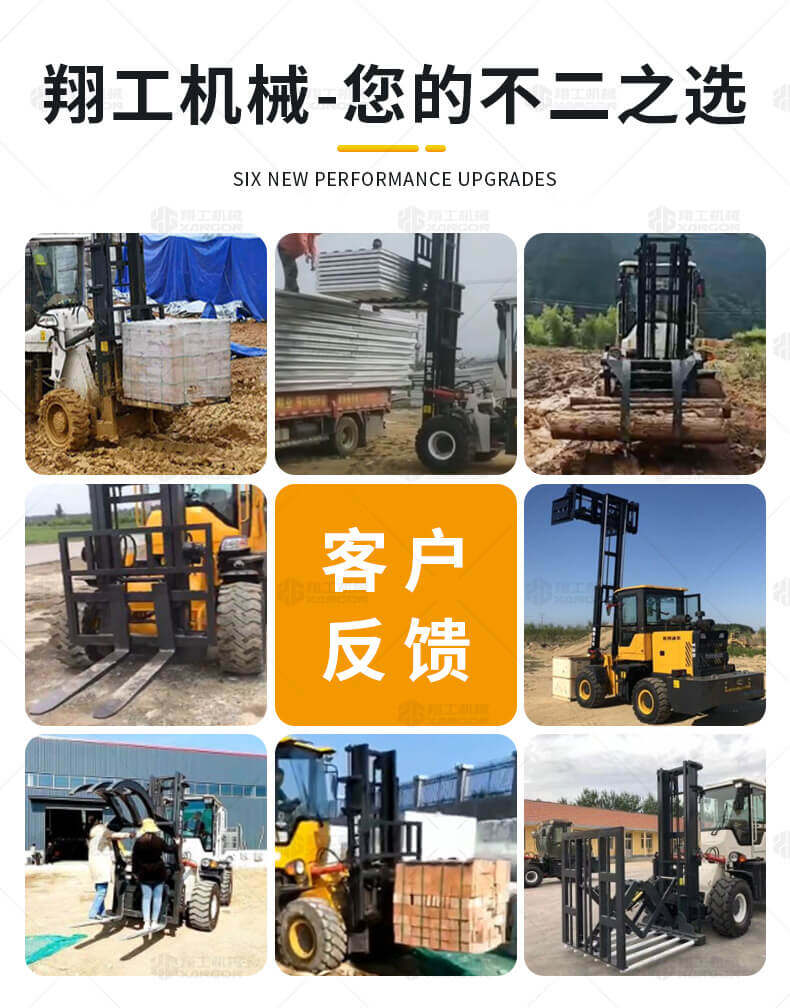 3.普通叉車(chē)只能在平整的路面上作業(yè),而越野叉車(chē)既可以在普通路面上作業(yè),還可以在山路泥路崎嶇道路作業(yè),輪胎抓地力強,不打滑。