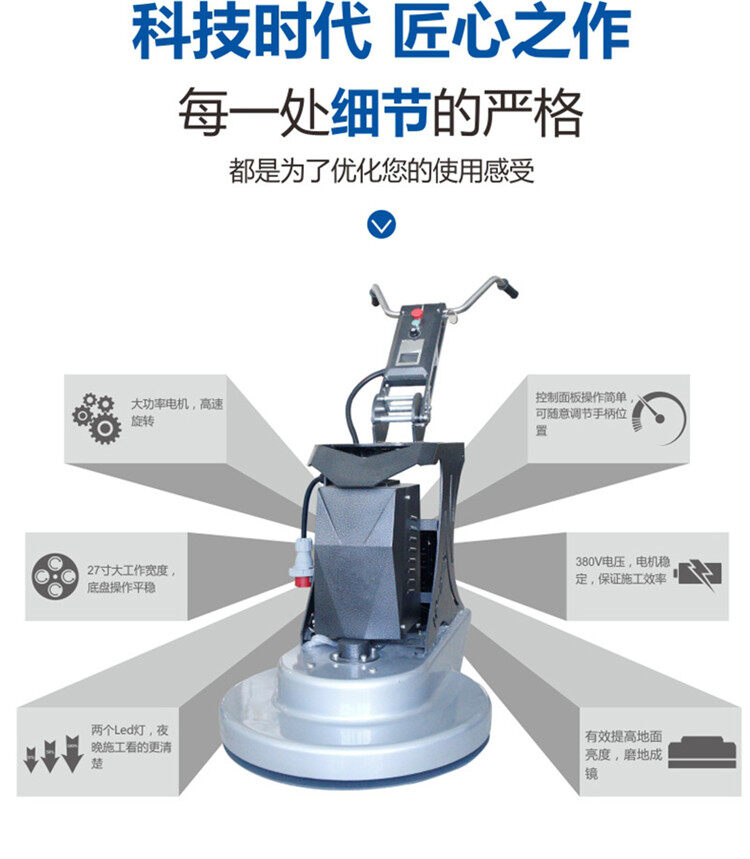 拋光機是為了讓地面表面有光澤,需要先研磨后才可以?huà)伖?。拋光分為粗拋和精拋,這時(shí)候可以使用拋光機,配合拋光墊,提高地面的光澤度。高速地坪拋光機讓你輕松完成地坪拋光工作,提高地坪亮度。