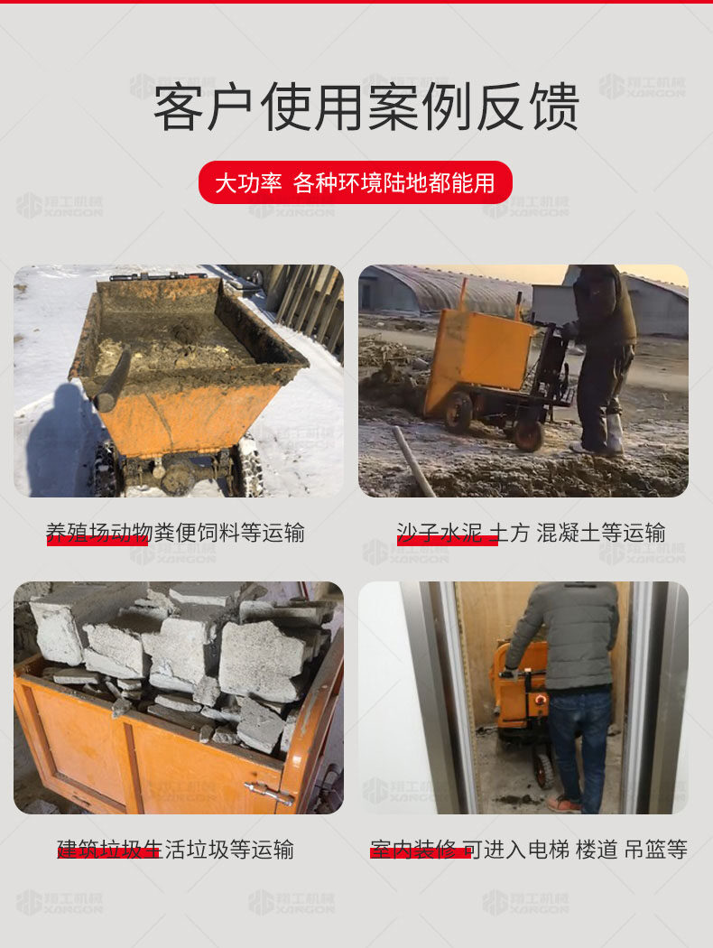 此款車(chē)適用于建筑工地、室內裝修、養殖場(chǎng)、工廠(chǎng)等場(chǎng)所,運輸沙子、水泥、土方、混凝土、建筑垃圾生活垃圾、養殖場(chǎng)動(dòng)物糞便、飼料等,體積小操作簡(jiǎn)單靈活,可原地360度轉圈,可進(jìn)入樓層、樓道、電梯、吊籃等各種狹小空間作業(yè),是您必不可少的裝卸助手。