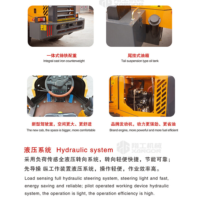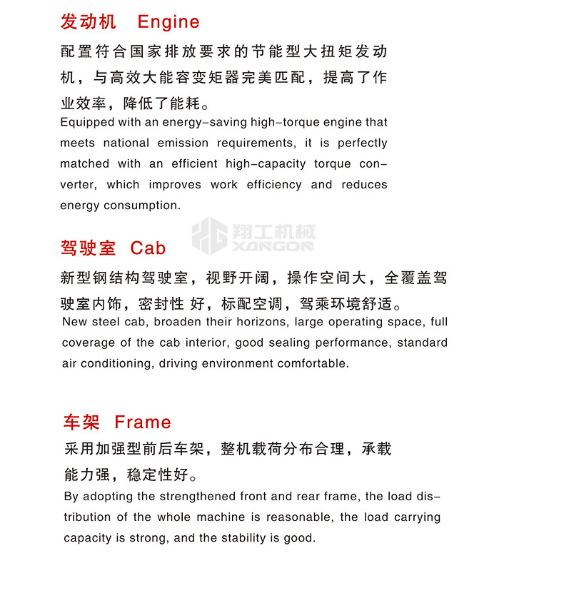 主要用于鏟裝土壤、砂石、石灰、煤炭等散狀物料,也可對礦石、硬土等作輕度鏟挖作業(yè)。換裝不同的輔助工作裝置還可進(jìn)行推土、起重和其他物料如木材的裝卸作業(yè)。在道路、特別是在高等級公路施工中,裝載機用于路基工程的填挖、瀝青混合料和水泥混凝土料場(chǎng)的集料與裝料等作業(yè)。