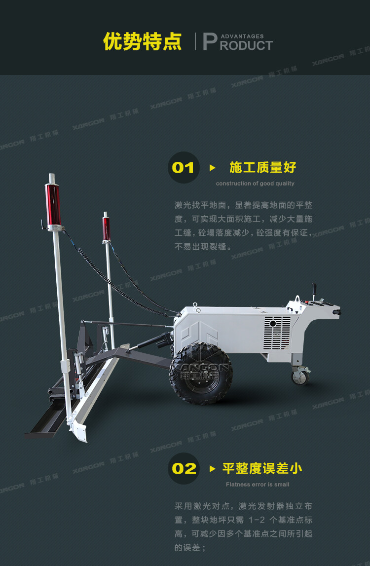 2,本產(chǎn)品的激光控制系統通過(guò)反饋調節,實(shí)時(shí)監控地坪的標高,確保地坪的水平平整度和保證地坪的密實(shí)均勻;
