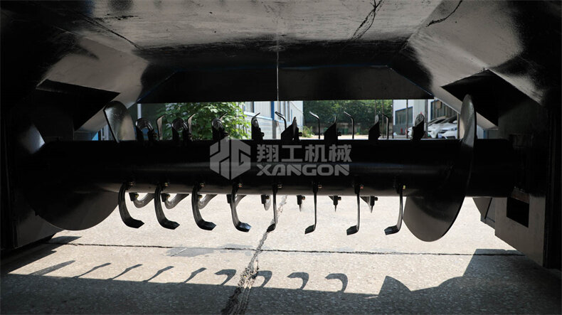 11. 翻拋能力強,翻拋滾筒由左右兩段反向螺旋和中間直段拋齒組成,旋轉的螺旋滾筒將三角形條垛物料向中間收攏,同時(shí)隨著(zhù)滾筒旋轉使物料向后翻拋,從而實(shí)現頂層物料和內部物料充分混合。