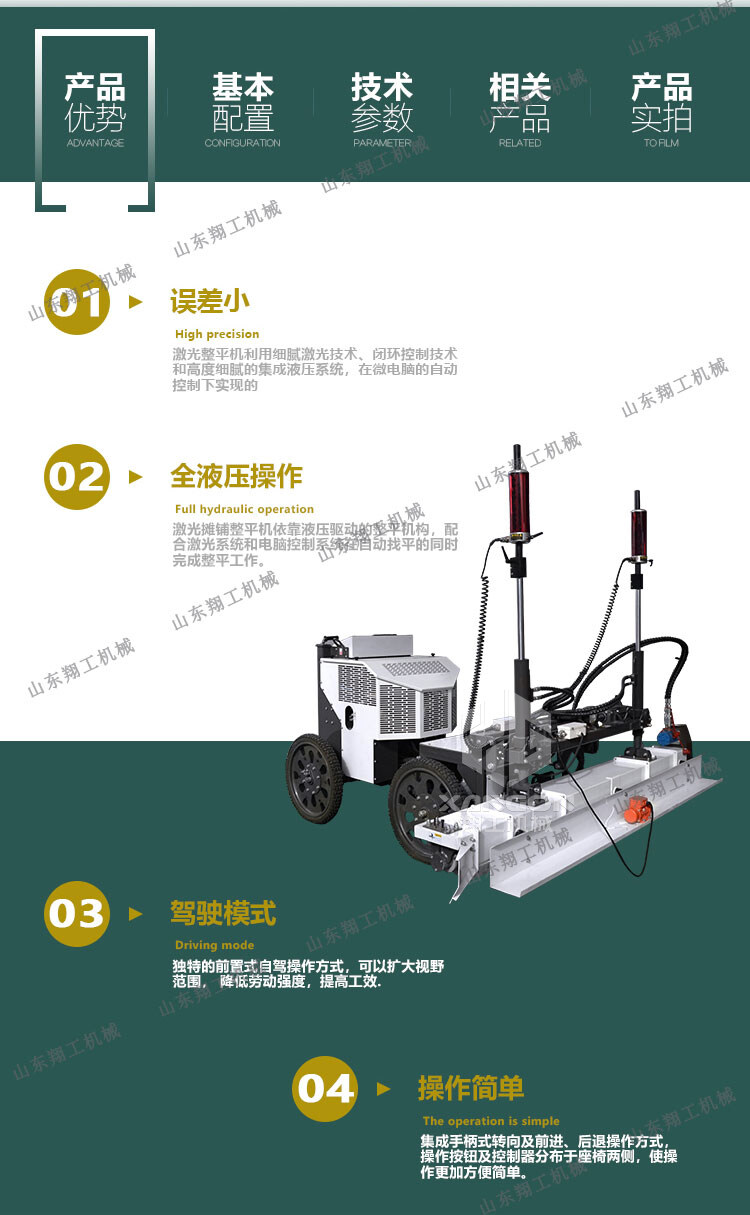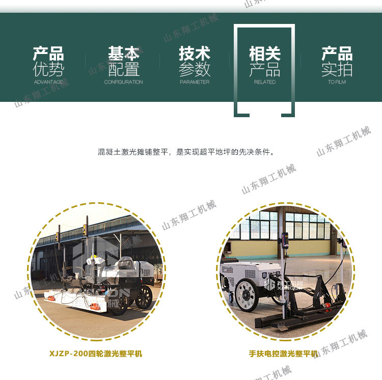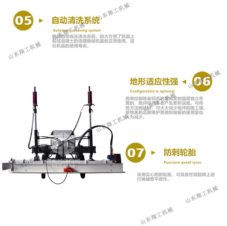 翔工機械精心研制開(kāi)發(fā)的激光混凝土整平機利用先進(jìn)的激光發(fā)射接收系統形成的閉環(huán)回路控制整平板尺的工作,精度高,廣泛用于現代工業(yè)廠(chǎng)房、大型購物場(chǎng)所、貨倉及其它大面積混凝土地面施工。