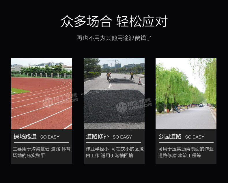 1. 作業(yè)半徑小, 可在狹小的區域內工作,適用于溝槽回填;