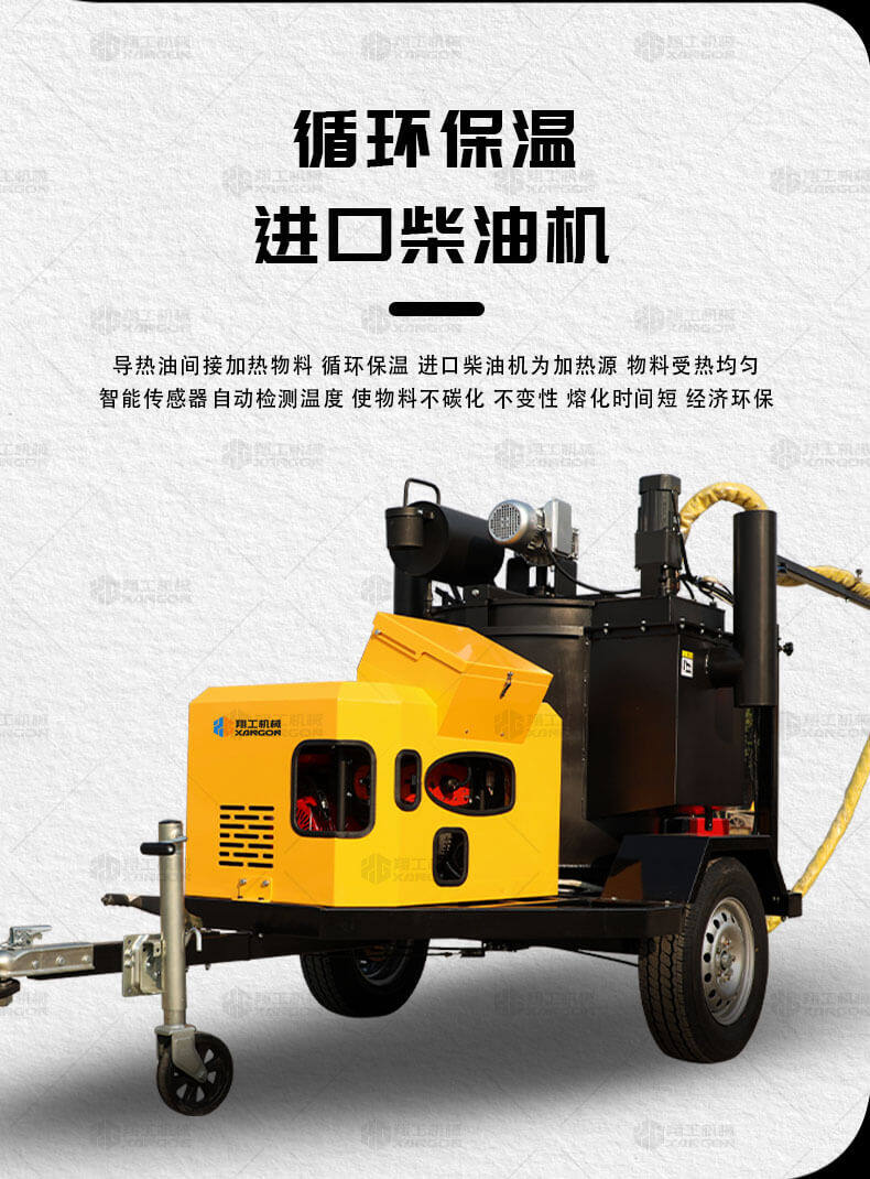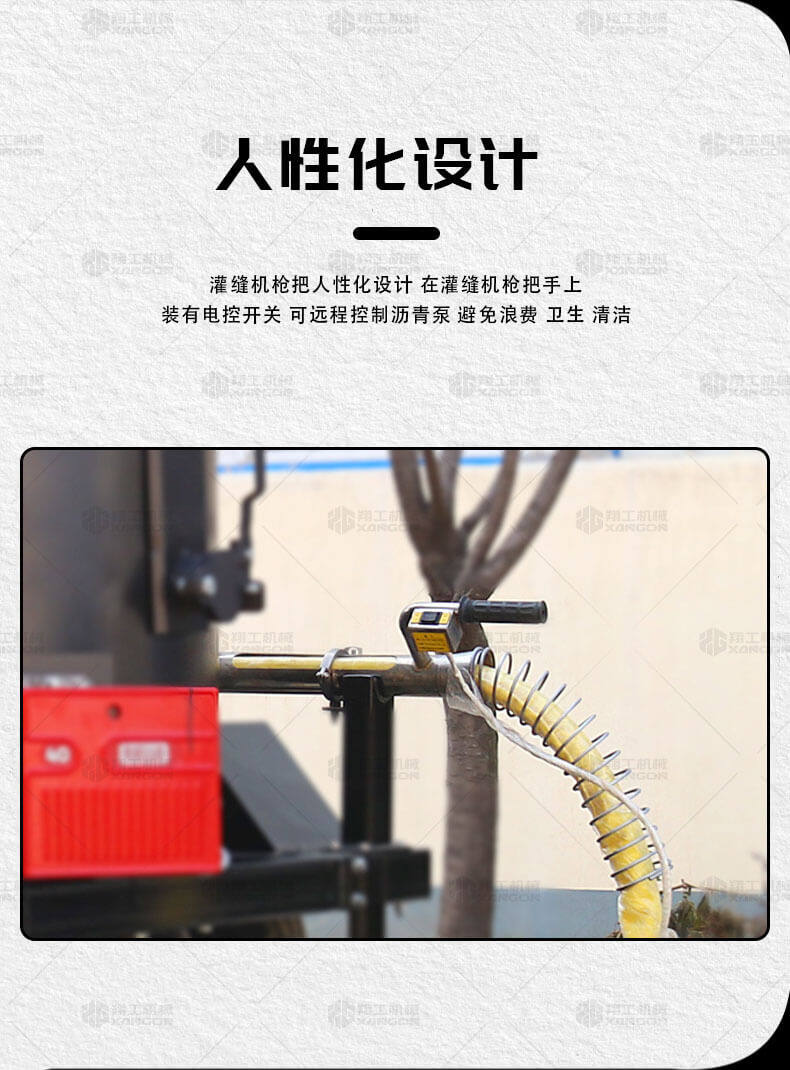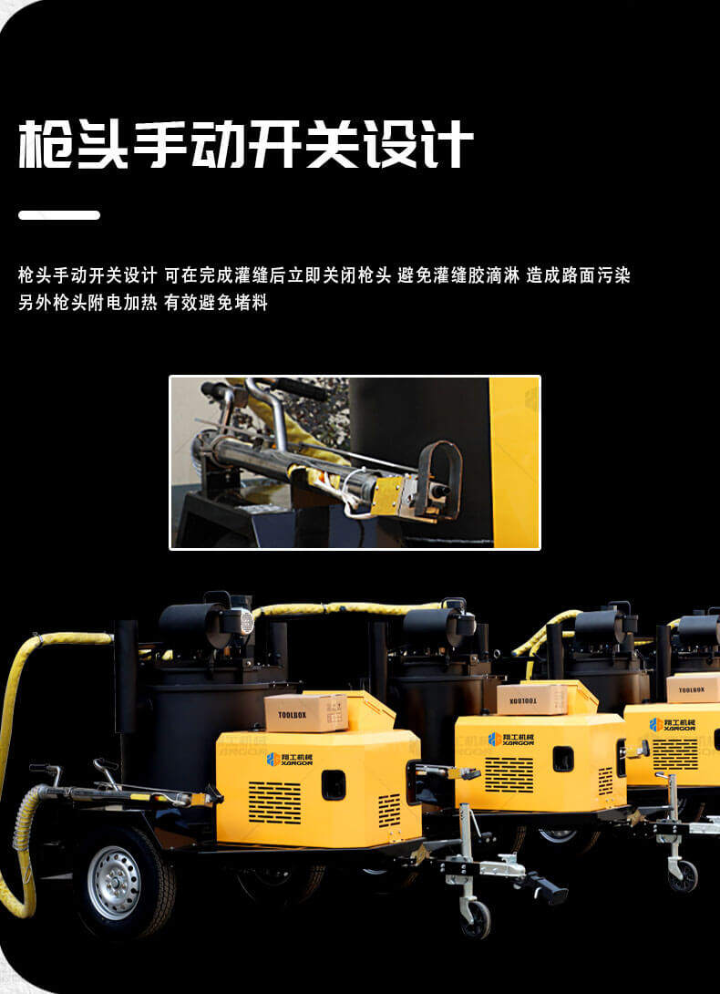 XGF-200瀝青灌縫機使用原料為瀝青灌縫膠,主要用于瀝青路面不規則裂縫、混凝土路面、橋梁伸縮縫、上下水道、煤氣管埋設機鋪裝路面的連結處防水處理,是翔工機械專(zhuān)門(mén)設計、生產(chǎn)的瀝青補灌縫機械。